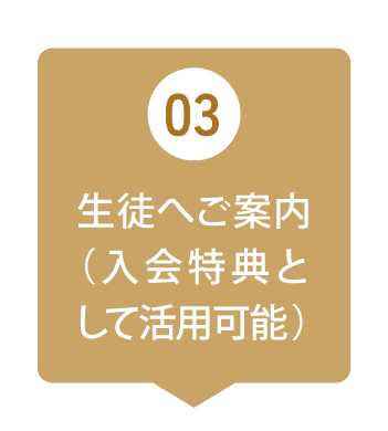 生徒さんへのご案内資料をお渡しします。入会特典として紹介いただくことで、スクールの魅力向上にもつながります。