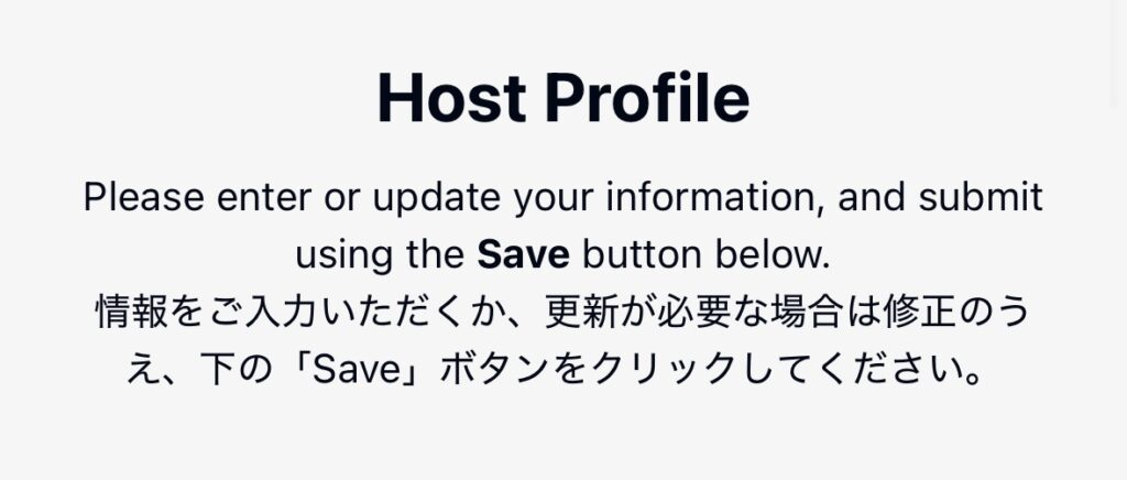 ❼Host’s Profileページの項目を入力してください。記入は全て英語でお願いいたします。
