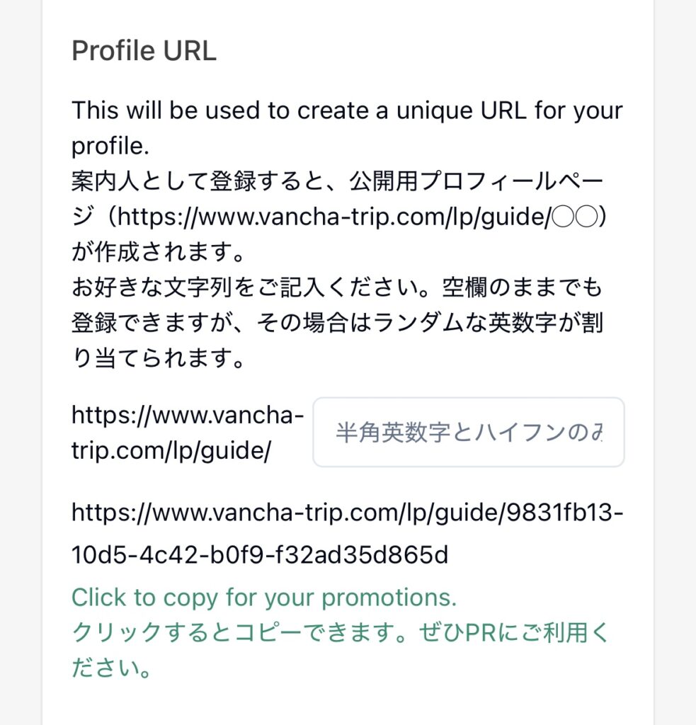 お名前と自己紹介文のみVANCHA TRIP上で公開されます。