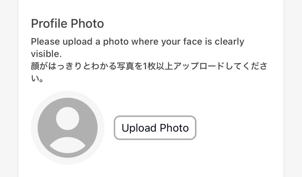 ❸まずはプロフィール写真をアップロードしてください。案内人ご本人の顔をカメラに向けたものでお願いします。Upload your photoをクリックすると写真が選択できます。
